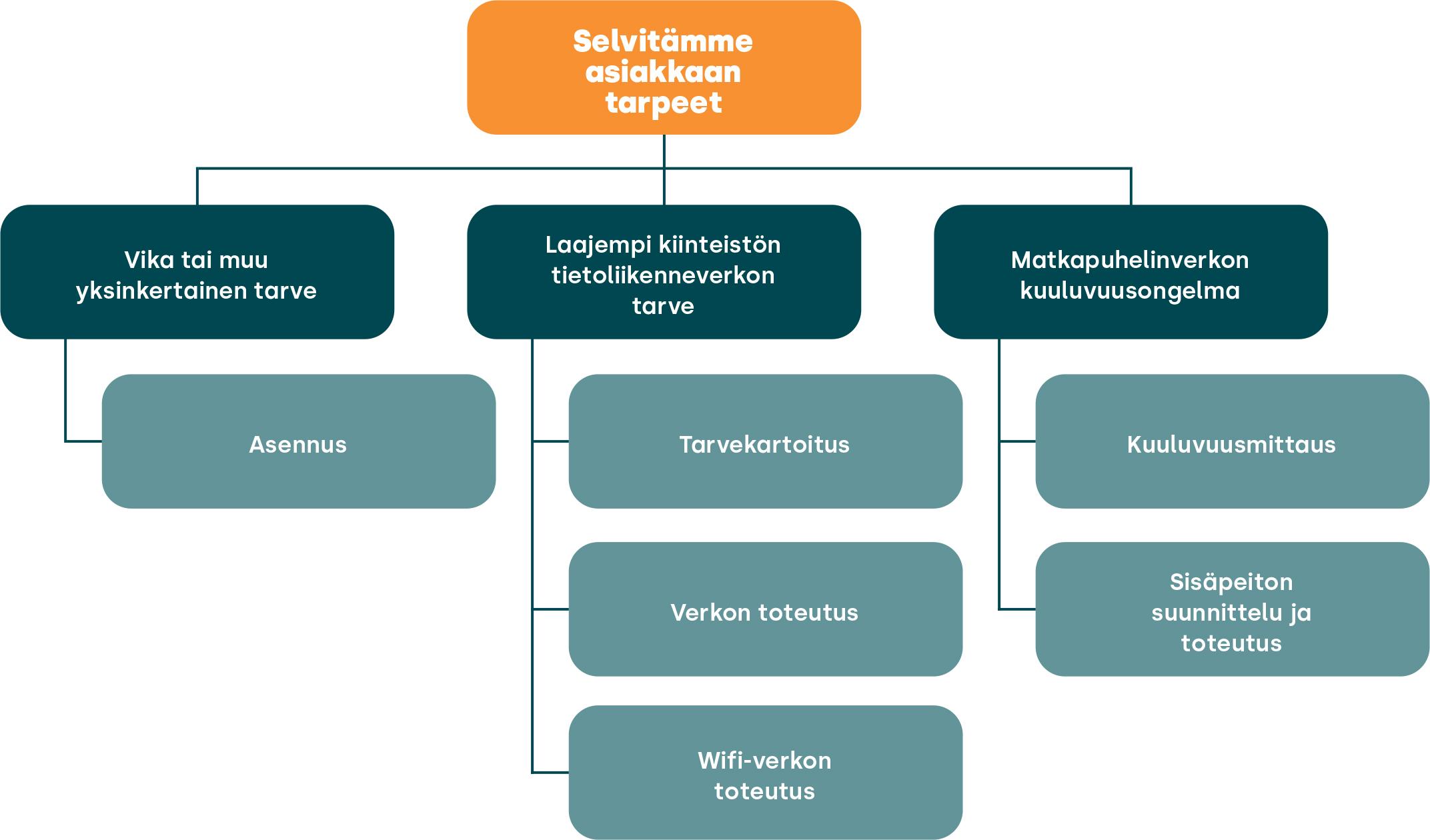 Sisäverkkotyöt EtusivuPalvelutConnectivitySisäverkkotyötToteutamme kaikki sisäverkkotyöt luotettavasti ja ammattitaidolla Sisäverkko on kiinteistön oma tietoliikenneverkko, joka varmistaa, että yhteydet toimivat kaikissa huoneissa, kaikilla laitteilla ja kaikissa tilanteissa. Kun etätyöt, videopalaverit tai yrityksen järjestelmät pätkivät, syy löytyy usein juuri sisäverkosta. Siksi sen suunnittelu, rakentaminen ja ylläpito kannattaa hoitaa ammattilaisten kanssa. Suunnittelemme ja rakennamme laadukkaat sisäverkot yrityksille, julkisille toimijoille ja taloyhtiöille kaikkialla Suomessa. Toimimme operaattorien luotettuna kumppanina, joten voit luottaa siihen, että kiinteistönne sisäverkko toimii saumattomasti yhteen operaattorien verkkojen kanssa. Mitä teemme? sisäverkkojen suunnittelu ja kuuluvuuskartoitukset sisäverkon laajennukset (kaapeloinnit ja pistorasiat) sisäverkon muutostyöt, kuten kaapelien, telineiden ja kytkentöjen siirrot wifi-asennukset vikamittaukset ja korjaukset dokumentointi ja testaukset Tarpeiden selvitys Ennen työn aloittamista kartoitamme kiinteistön nykyiset yhteydet ja sen, mitä tarvitaan tänään ja tulevaisuudessa. Näin saatte sisäverkon, joka on nopea, luotettava ja oikein mitoitettu käyttäjien tarpeisiin. Näin etenemme Teemme sisäverkkotöistä tarjouksen huolellisen tarvekartoituksen pohjalta. Toteutamme työn ripeästi ja siististi, testaamme kaikki kaapeloinnit ja dokumentoimme kokonaisuuden selkeästi, jotta ylläpito ja mahdolliset korjaukset sujuvat jatkossa nopeasti. Mikäli ongelmia ilmenee, tarjoamme huolto- ja viankorjauspalvelut nopeasti ja luotettavasti. Tavoitteenamme on tehdä sisäverkosta toimintavarma ratkaisu, joka tukee työskentelyä, asumista ja liiketoimintaa joka päivä. Do you need help with indoor cabling or wireless connections? Please contact us! Name* Company Object address Email* Phone number* Message*